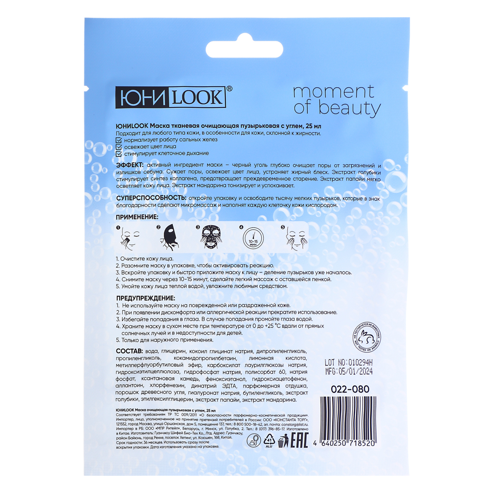 ЮНИLOOK Маска очищающая пузырьковая с углем, 25 мл