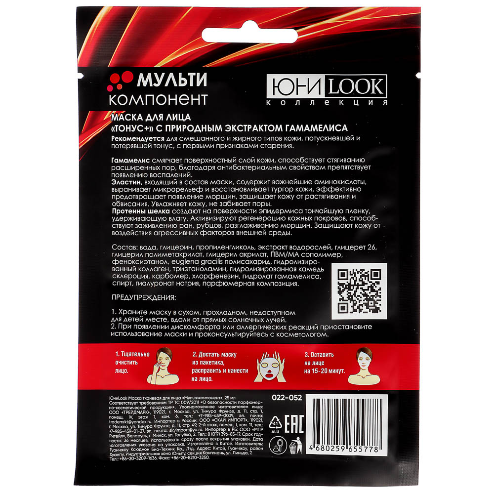 ЮНИLOOK Маска тканевая для лица Мультикомпонент, 25мл, 3 вида
