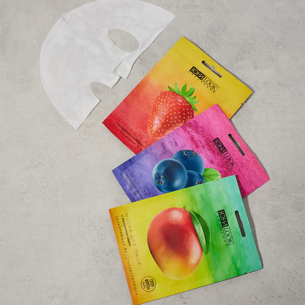 Маска тканевая для лица ЮНИLOOK «Суперфрукты» – это набор из 3-х масок для супер обновления и омоложения! • Увлажняющая восстанавливающая маска с экстрактом манго питает кожу и восстанавливает естественный баланс влаги в клетках эпидермиса. • Антиоксидантная омолаживающая маска с экстрактом черники подтягивает и увеличивает эластичность кожи. • Очищающая омолаживающая маска с экстрактом клубники активно борется с воспалениями и акне, разглаживает кожу.