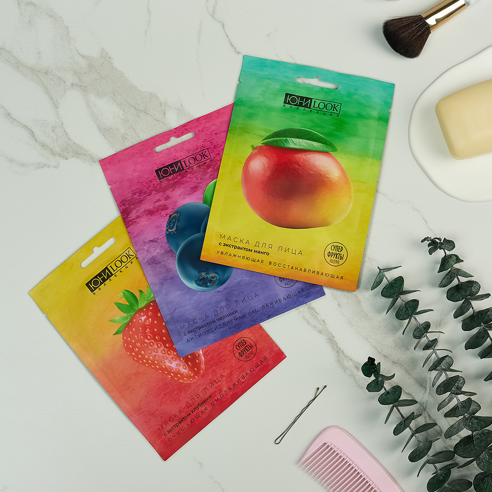 ЮНИLOOK Набор Маска тканевая для лица Суперфрукты 22 мл х 3шт, 3 вида