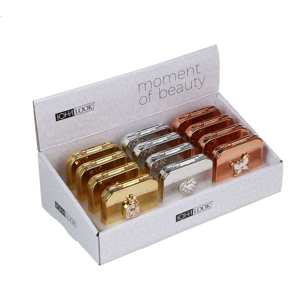 ЮНИLOOK Мирикл Зеркало карманное складное, зум х1, х2, пластик АБС, стекло, 6,3x6,3см, 3 цвета