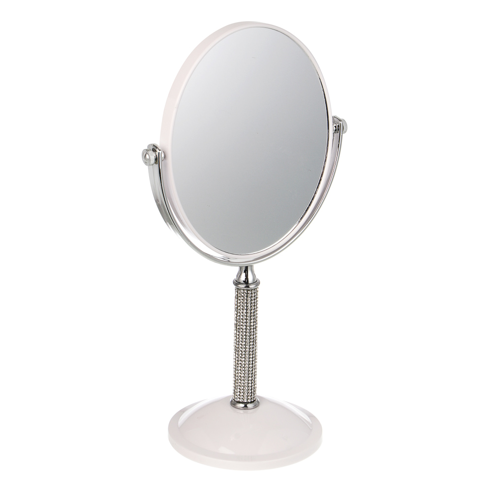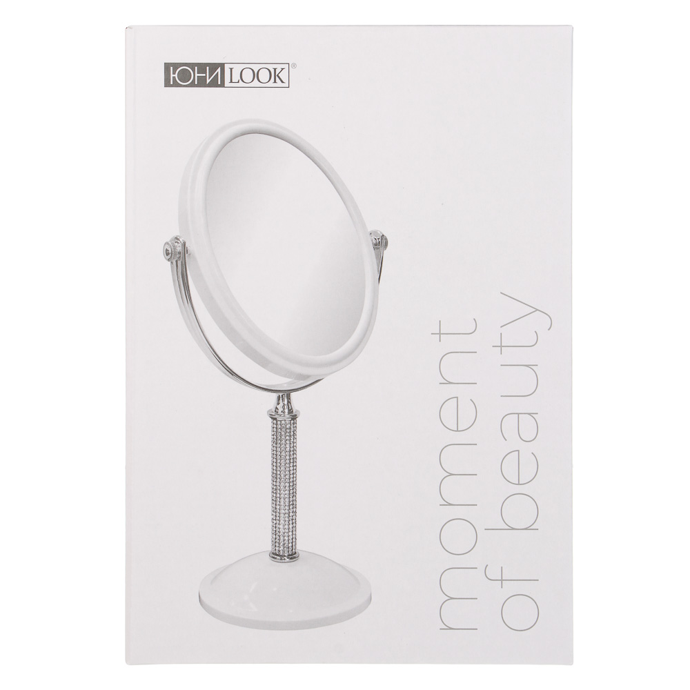 ЮНИLOOK Кристал Зеркало настольное на подставке, пластик, стекло, высота 30см, 16х13см, белый