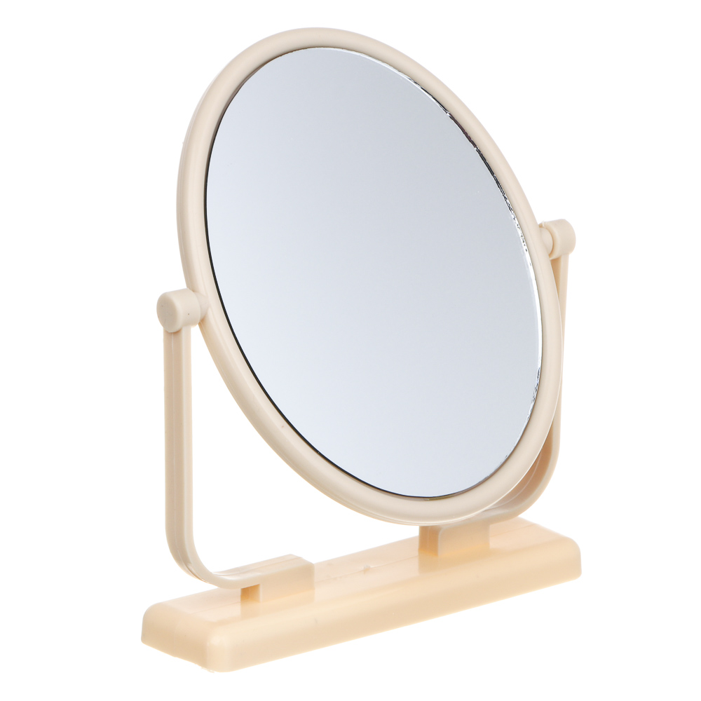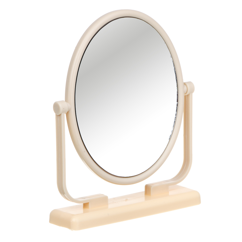 Зеркало настольное овальное от ЮНИLOOK на пластиковом основании, размер 15,5х12,5 см – это незаменимый аксессуар для уходовых процедур, макияжа или создания укладки, который будет гармонично смотреться на косметическом столике или в ванной комнате, не занимая много места. Устойчивая подставка снижает риск случайного опрокидывания. Размер зеркала оптимален для комфортного повседневного использования дома, а также его можно брать с собой в путешествия. Предусмотрена регулировка угла наклона. Зеркало не искажает отражение, легко очищается от загрязнений и разводов. 2 цвета в ассортименте.