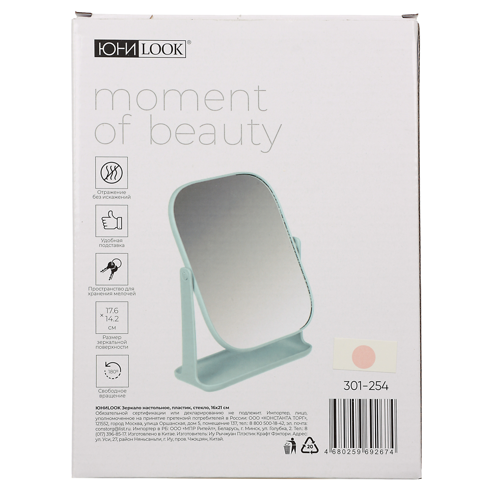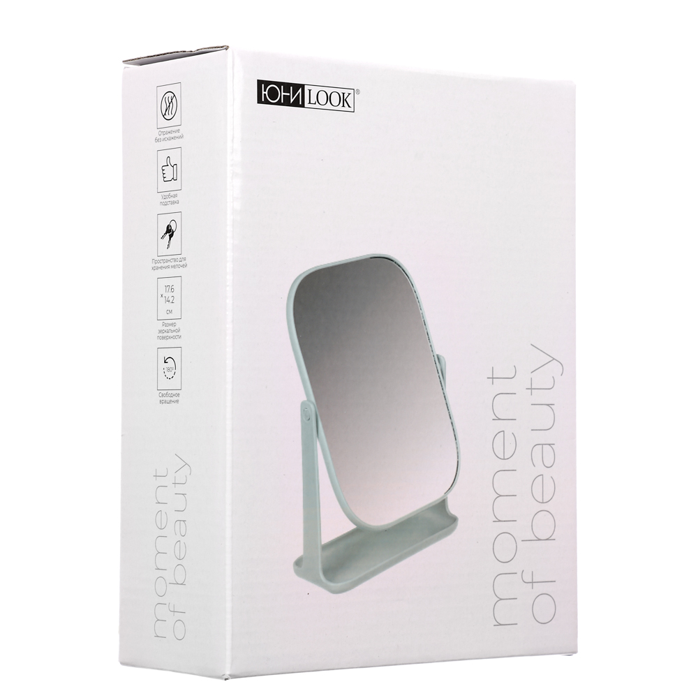 Зеркало настольное ЮНИLOOK – это удобный и компактный аксессуар, который необходим для создания повседневного макияжа и проведения уходовых процедур: нанесения масок и кремов, а также снятия макияжа. Зеркало на устойчивой подставке имеет легкий вес и его можно расположить в любом месте, где имеется оптимальное освещение. Имеет регулируемый угол наклона. Доступно в трех цветах.