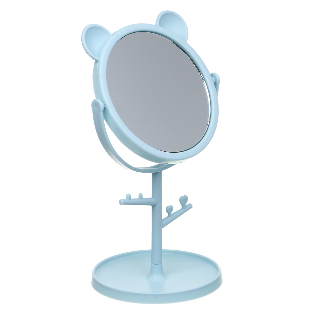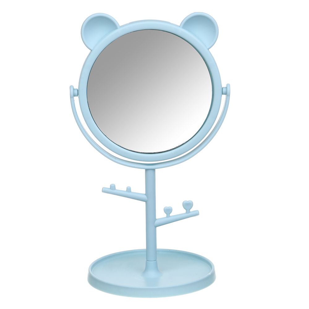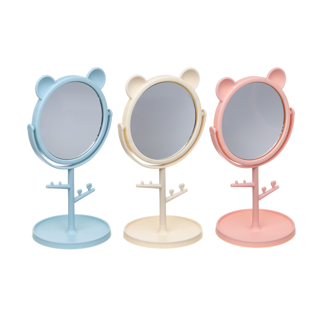 ЮНИLOOK Зеркало настольное с подставкой, пластик, стекло, высота 20 см, диаметр 10,5см, 3 цвета